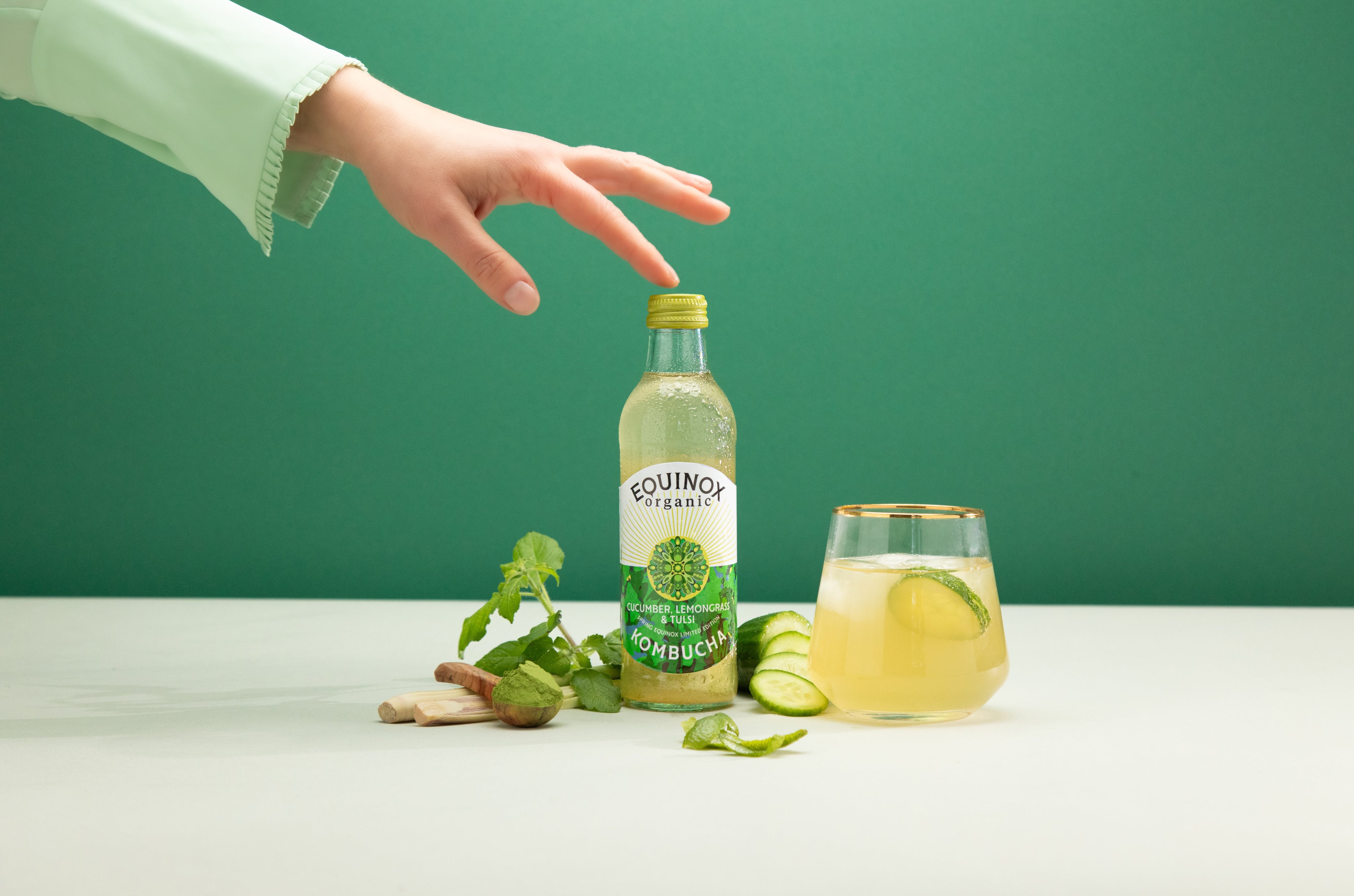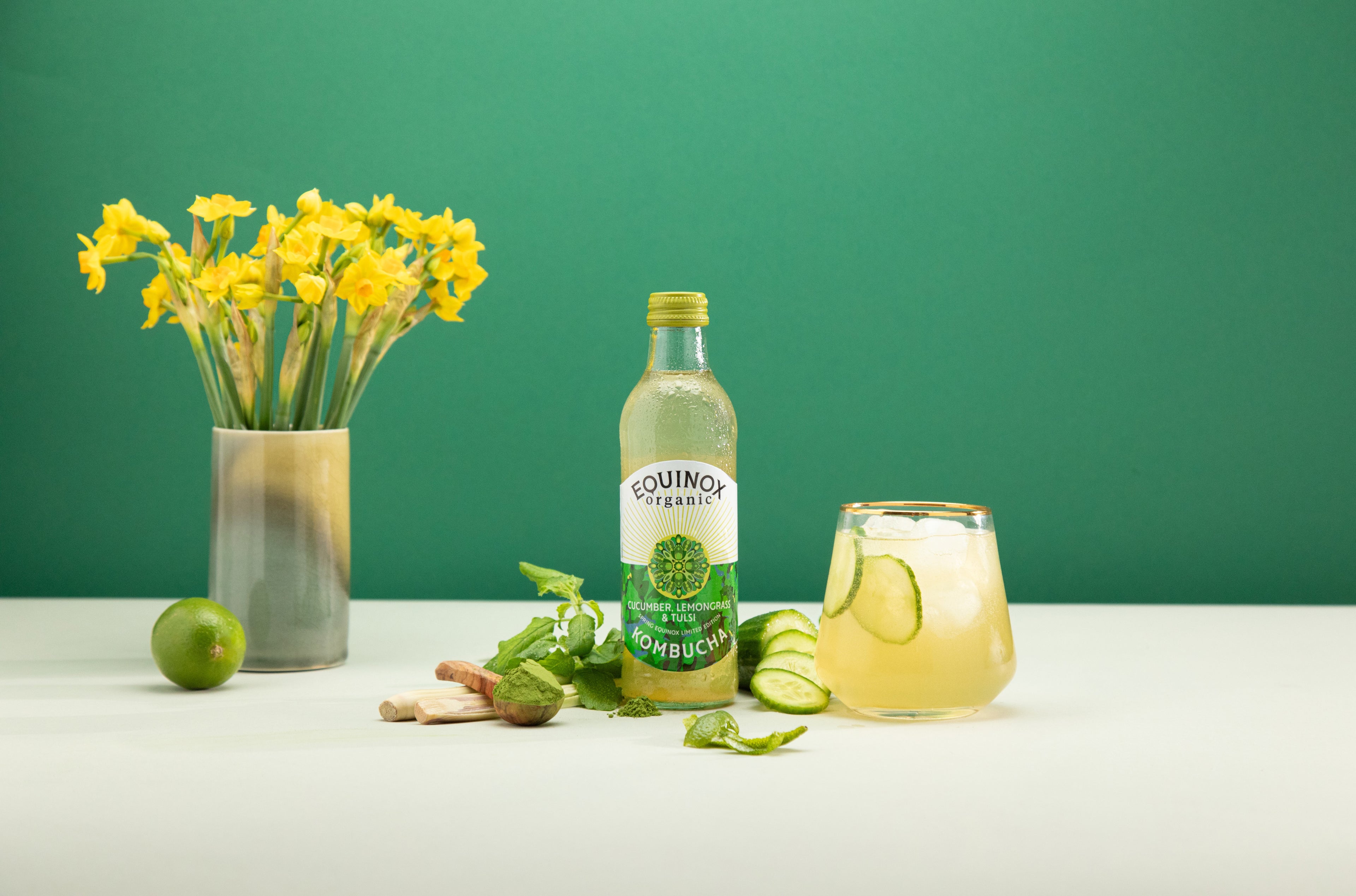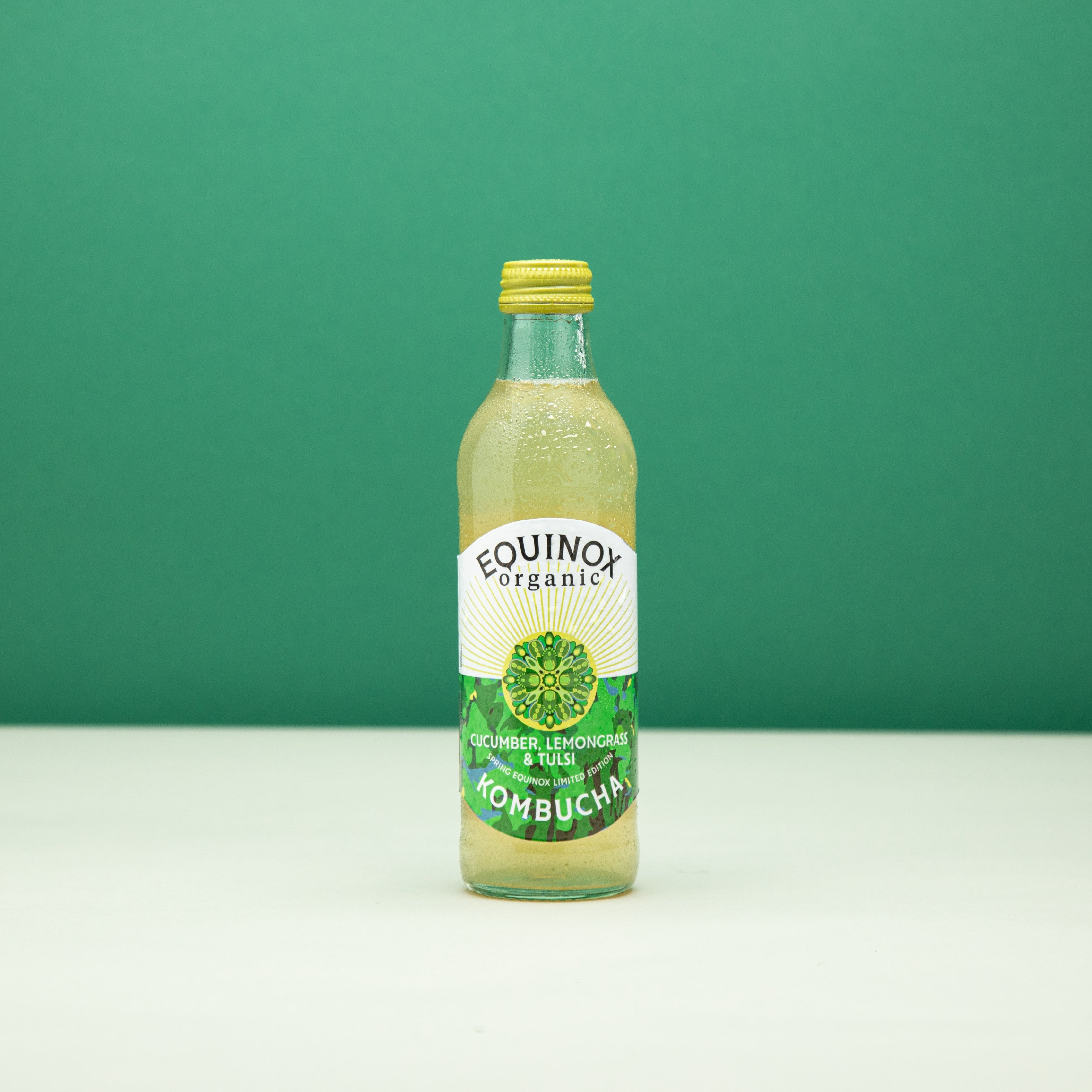 Find your balance with our special edition Spring Equinox kombucha – a vibrant mix of refreshing cucumber, lemongrass and lime with added functional benefits from Matcha and Tulsi (Holy Basil), known for its calming properties.
