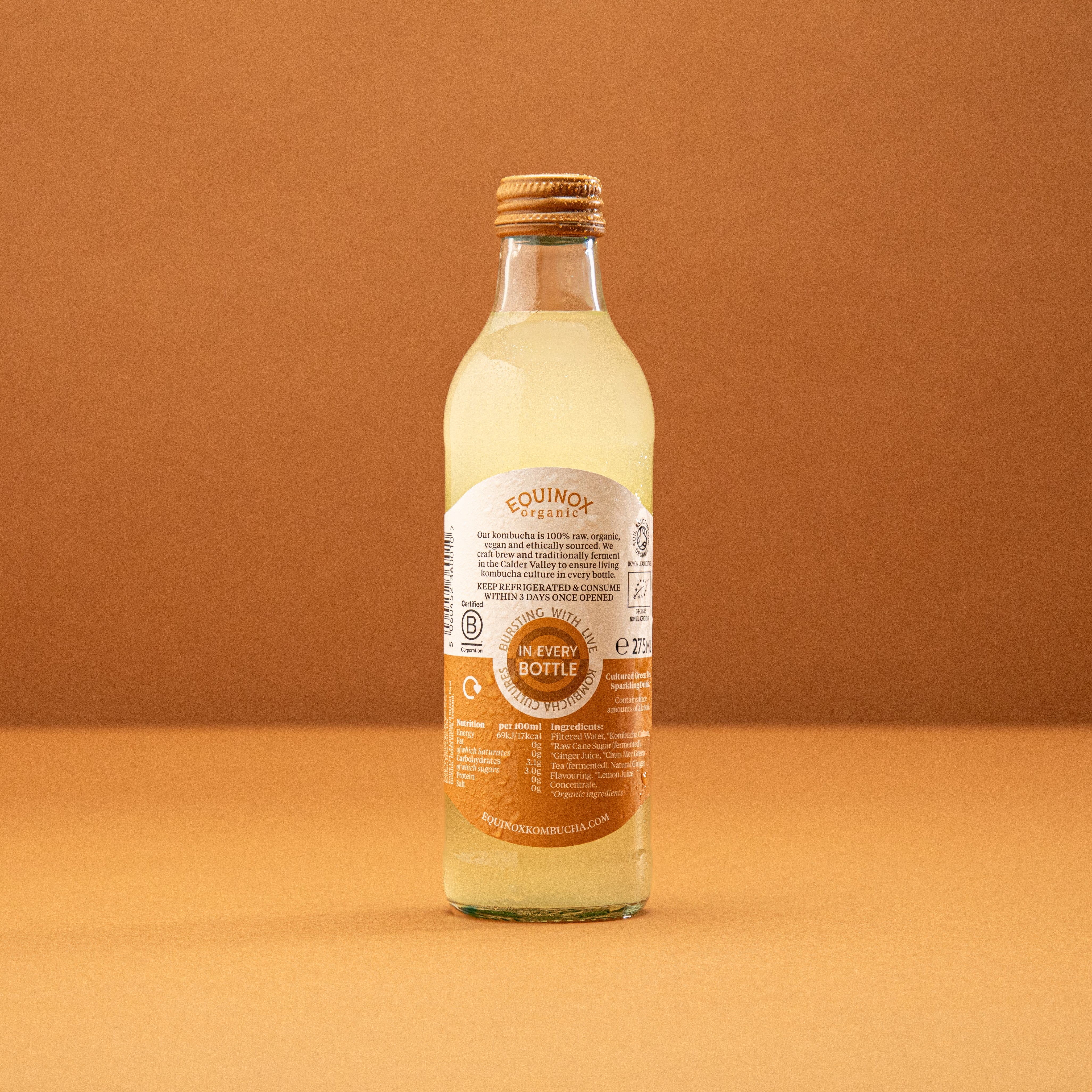 All our bottled drinks are 100% Organic, Raw, Vegan and Gluten Free. Comes in 275ml glass bottles in fully recyclable packaging.